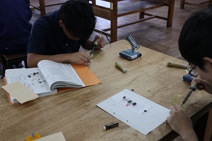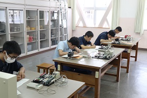本日、電気電子科3年生の5・6時間目は課題研究です。制作テーマ決まっている班はメンバーで研究中、まだ決まっていない班はPCで検索中、中には明日の実習?の準備をしている人も(先週、基板の制作を失敗したのかも・・・・)