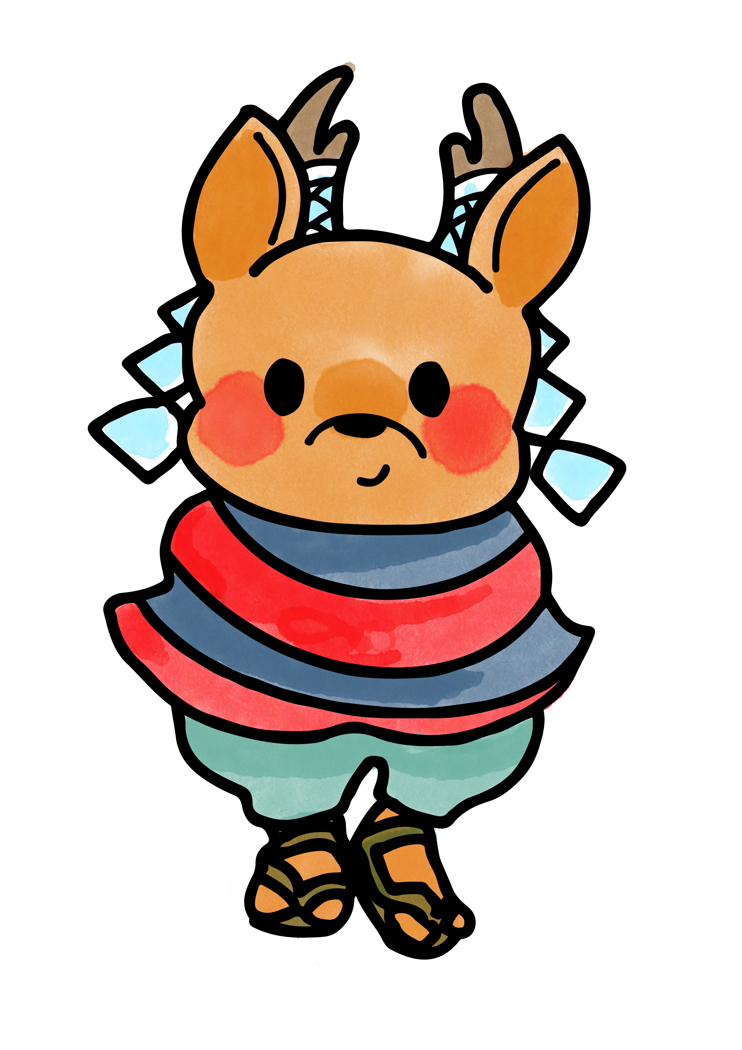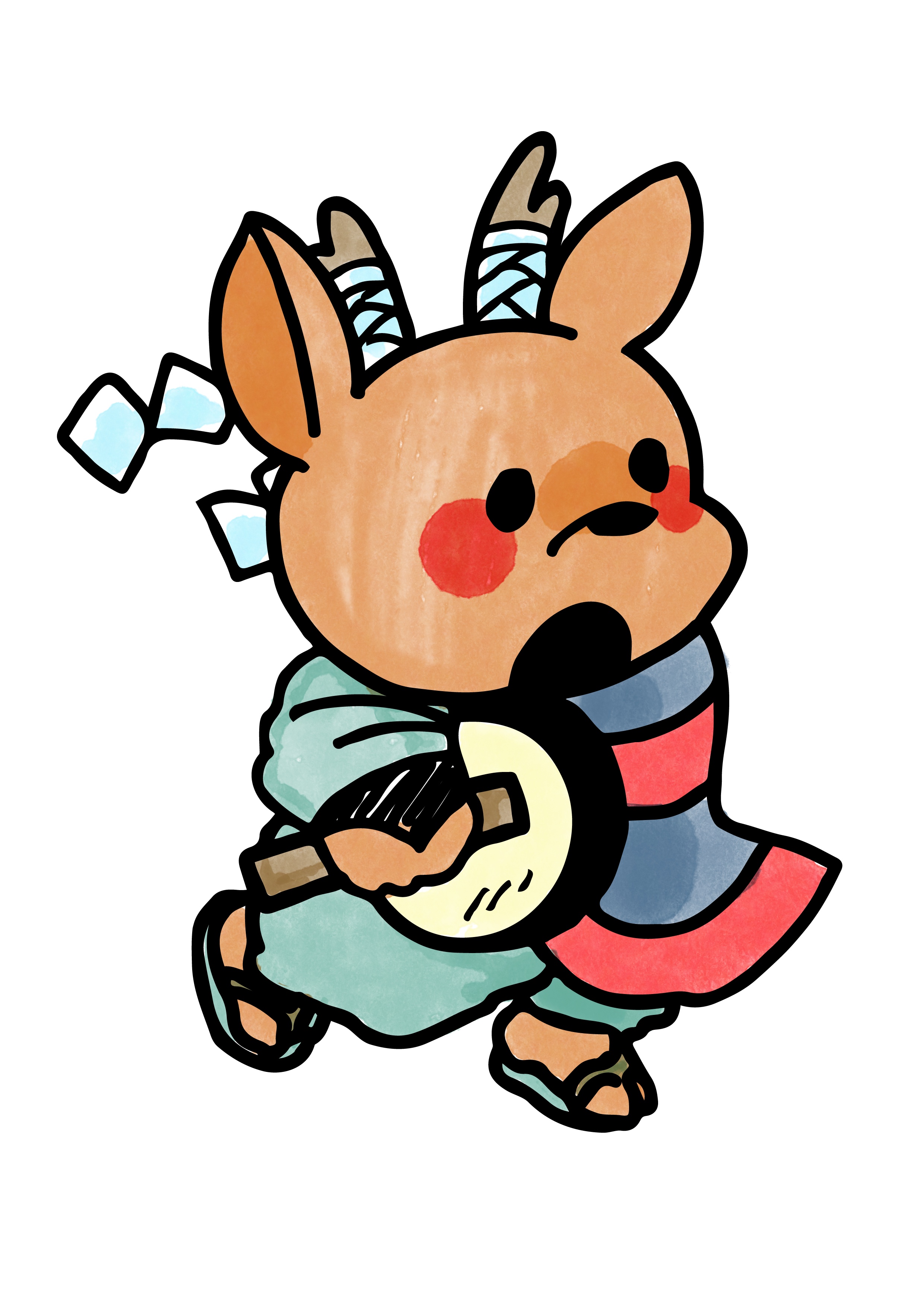 今年初めて、「お練り」を多くの人に知ってもらいたいと、吉高「お練り」応援キャラクターを制作し、HP上で誰でも自由にイラストをダウンロードできるようにしました。「しかのん」と「おねりん」のシールとピンバッジを販売しました。ご購入いただいた皆様、ありがとうございました。